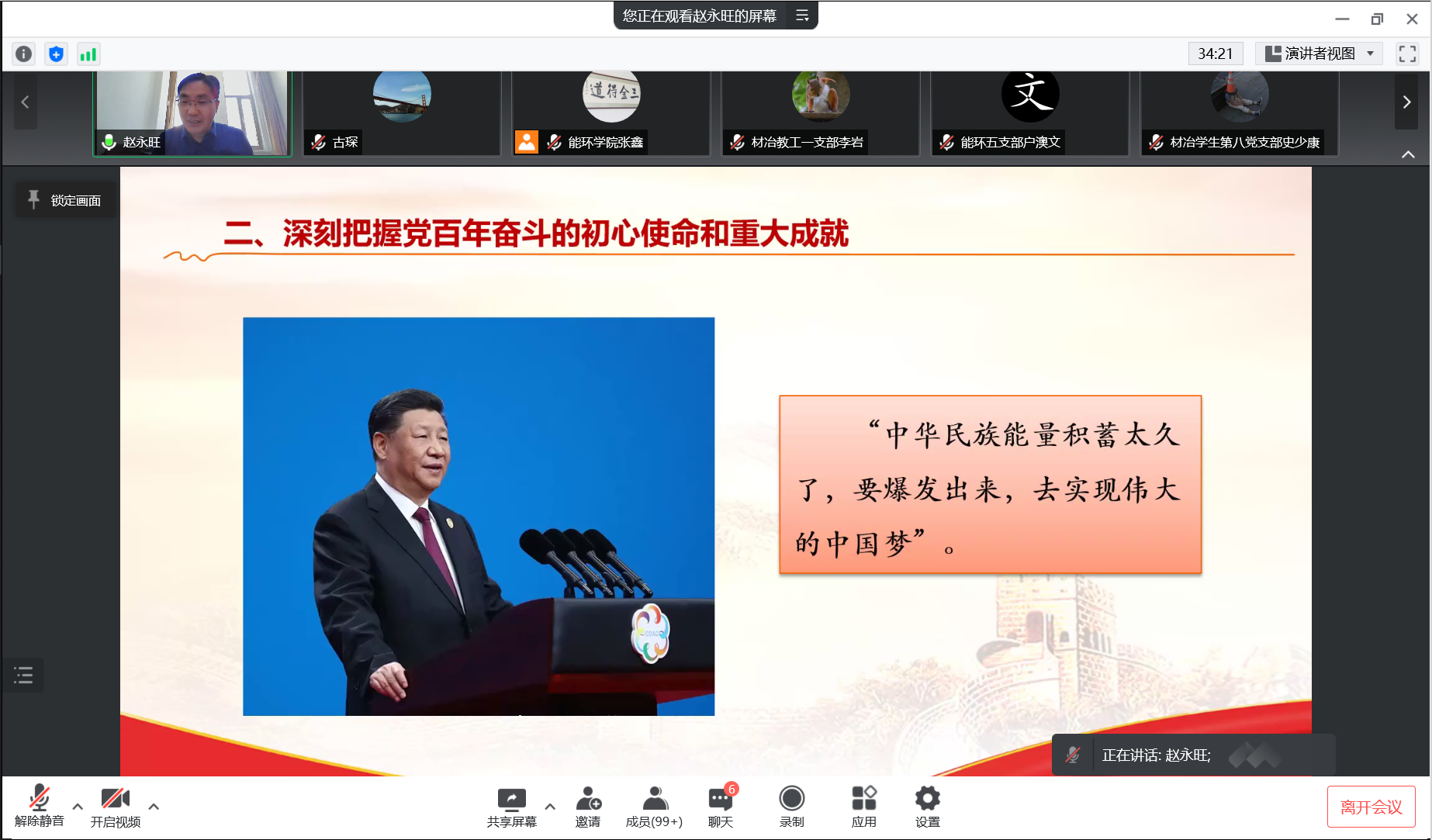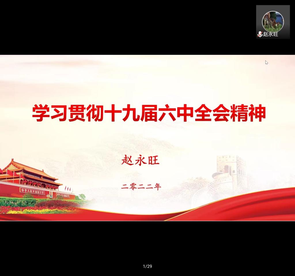 为深入学习贯彻党的十九届六中全会精神,深化拓宽党史学习教育,切实将全院师生的思想和行动统一到全会精神上来,按照集团《学习贯彻党的十九届六中全会精神专题宣讲工作方案》要求,4月18日上午,公司特邀公司党委宣传部部长赵永旺为学院师生讲授专题党课。党课以线上形式进行,由公司党委书记张鑫主持,公司全体教职工及党员员工参加。