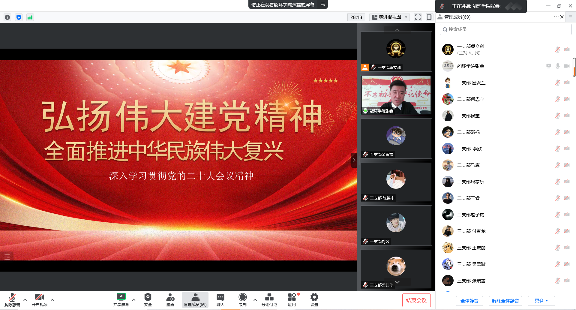 张鑫书记结合学习党的二十大精神的体会,为入党积极分子们详细介绍了党的二十大的基本情况,带领学员们回顾了我们党过去五年的工作和新时代十年的伟大变革,重点和学员们共同学习了党的二十大提出的新观点、新论断。张鑫书记还针对入党积极分子的群体特点,重点就党的二十大关于教育工作、青年工作和加强党的建设的有关论述作了认真解读。