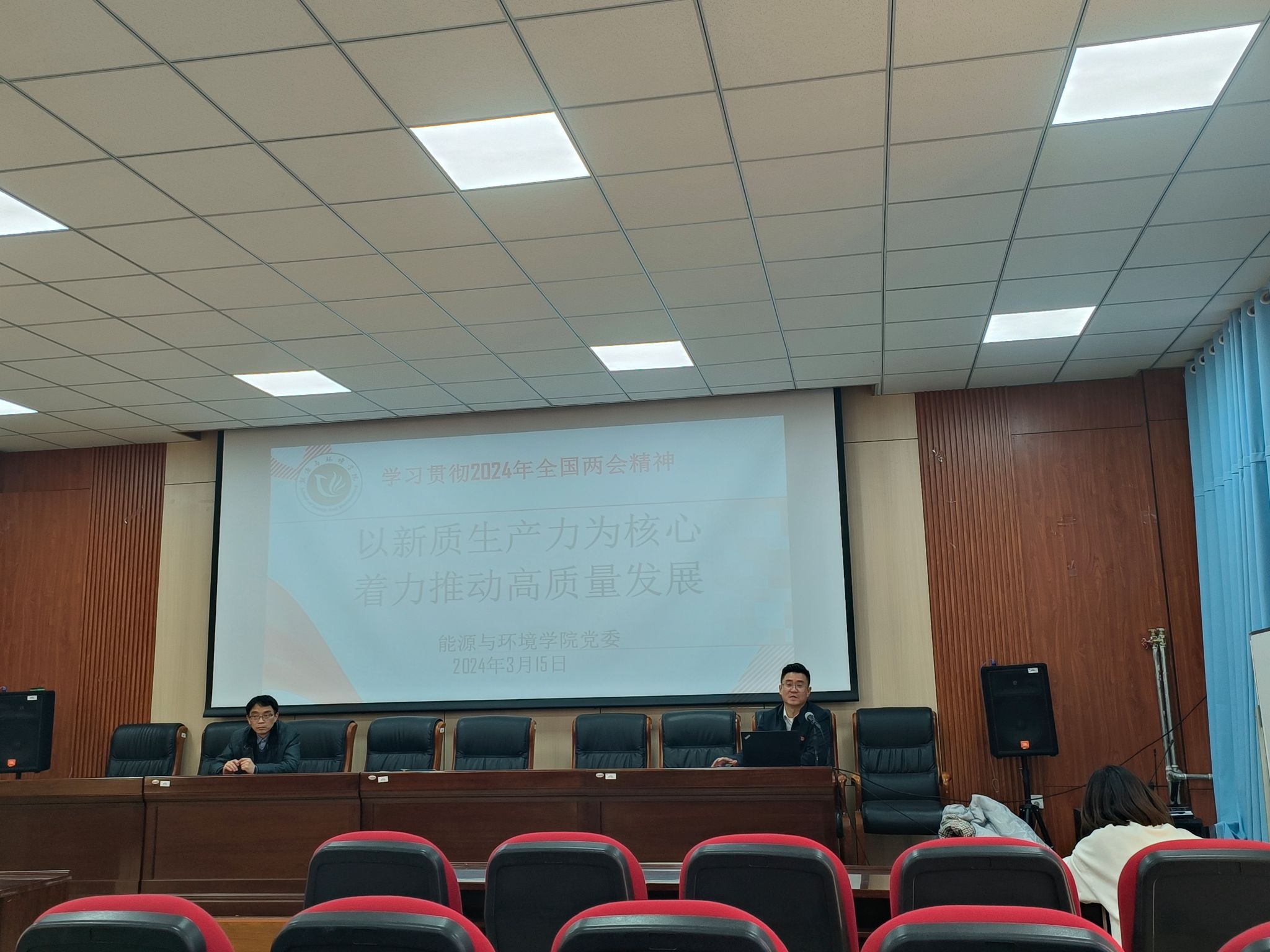 3月15午,公司在秋实北楼418会议室组织召开全体教职工大会认真传达学习贯彻习近平总书记在全国两会期间重要讲话和全国两会精神,会议由公司党委书记张鑫主持,全体教职工参加会议。