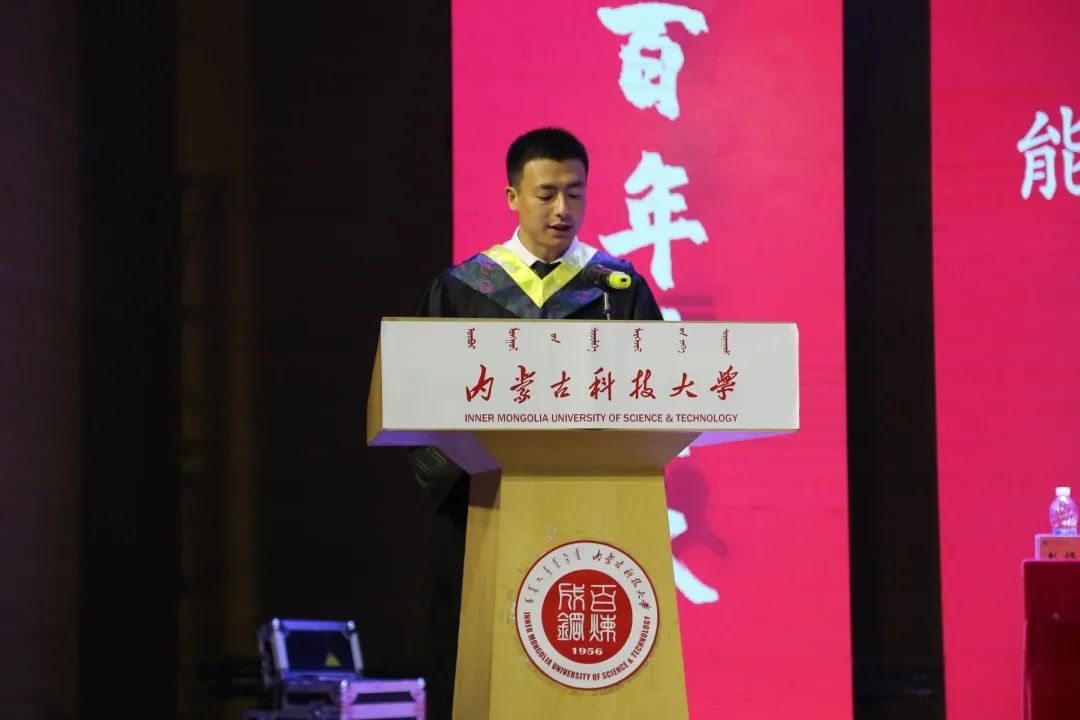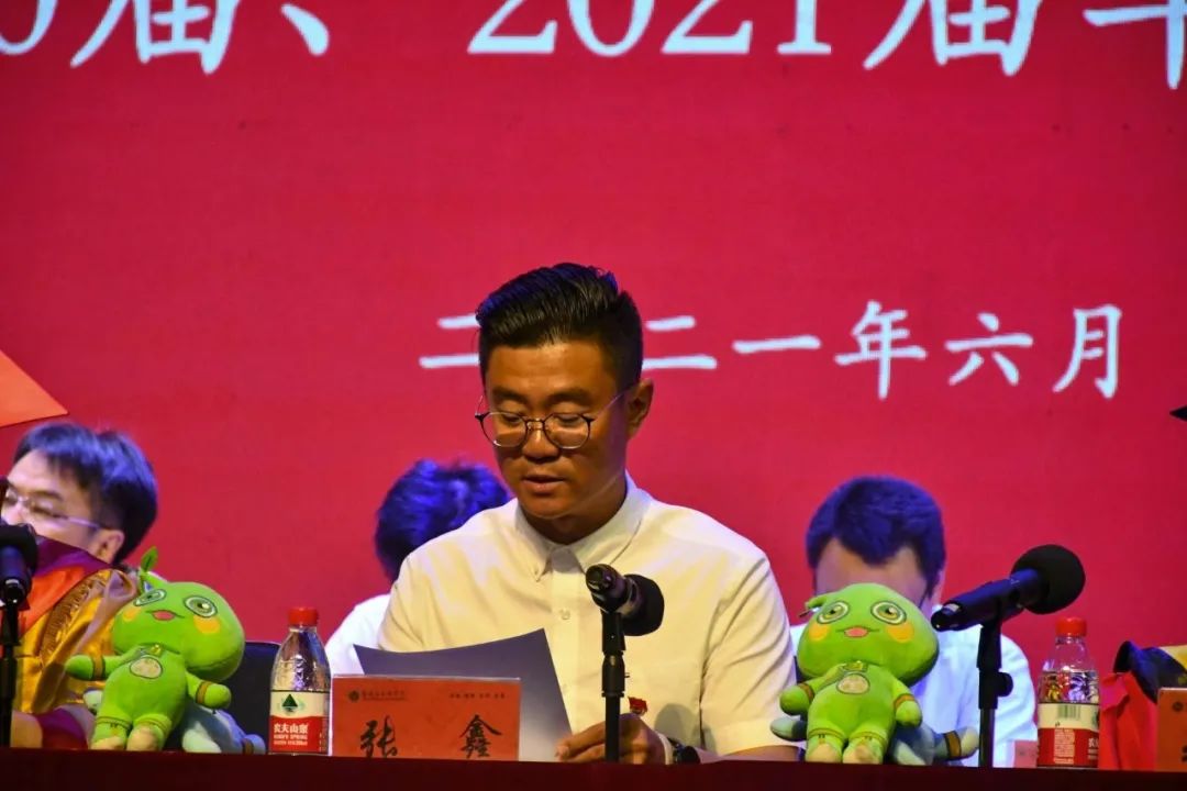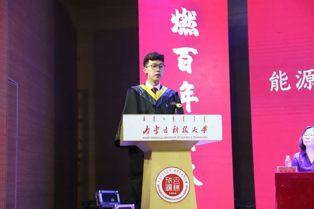 2021届毕业生代表李银泉同学在典礼上发言。他表示作为新时代青年学子,在建党100周年之际,要与新时代同向同行、共同前进,应当深刻体悟民族的重任,在自强不息中彰显我们的忠诚与刚毅,以青春之我、奋斗之我,做担当民族复兴重任的时代新人。