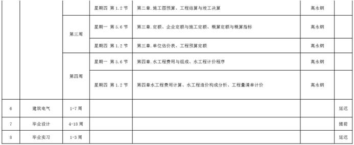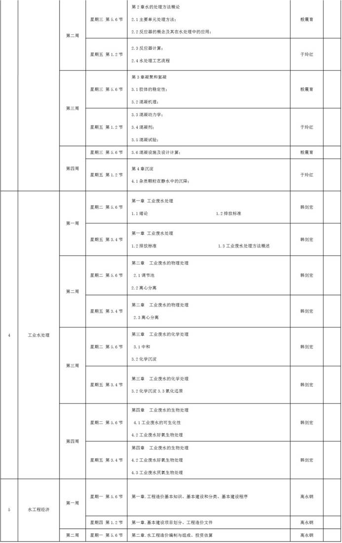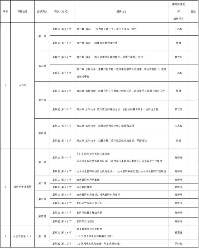 给排水科学与工程专业理论教学课程线上教学工作计划如下表所示。