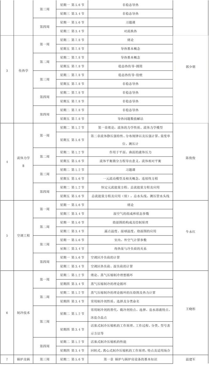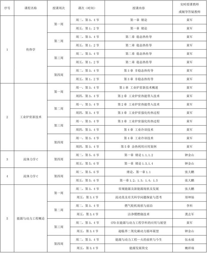 能源与动力工程专业理论教学课程线上教学工作计划如下表所示。