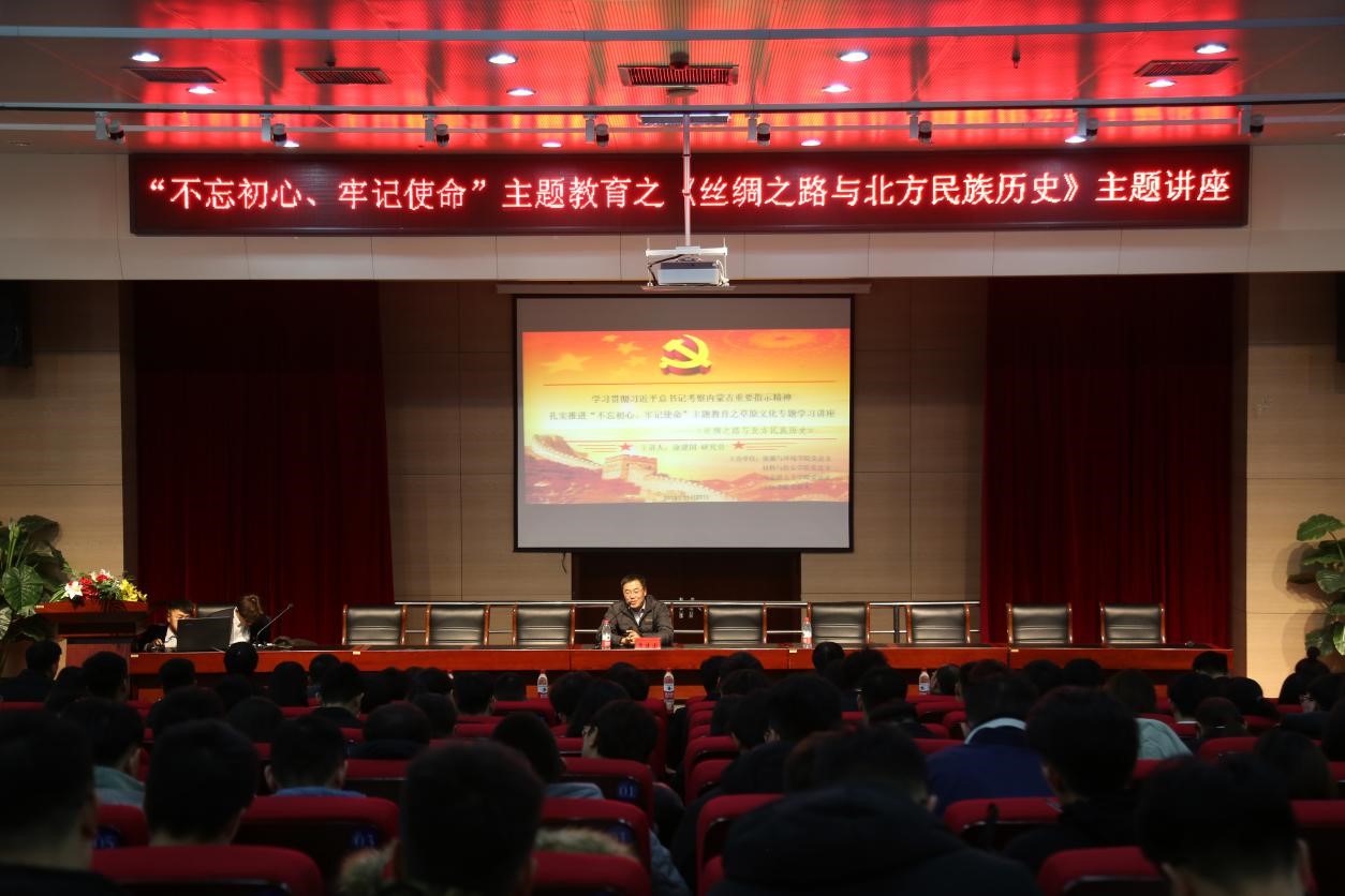 为了认真贯彻落实习近平总书记考察内蒙古时的重要讲话精神,扎实推进“不忘初心、牢记使命”主题教育,教育引导广大青年员工不断凝聚“建设亮丽内蒙古,共圆伟大中国梦”的精神力量,公司党总支联合材料与冶金公司党总支、马克思主义公司党总支、文法公司党总支共同举办了“不忘初心、牢记使命”主题教育之《丝绸之路与北方民族历史》专题讲座。内蒙古社会科公司草原文化研究所副研究员康建国应邀开讲。马克思主义公司党总支书记刘玉明、文法公司党总支书记李永林、公司党总支书记李卫平、校团委副书记张利敏与现场同学共同聆听了讲座。