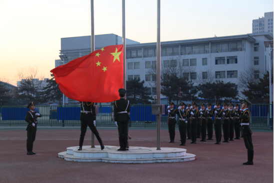 雄壮的国歌声响彻校园,鲜艳的五星红旗与太阳一同升起!同学们集体行注目礼,奏唱国歌;冉冉升起的五星红旗,点燃了同学们强烈的爱国情怀。