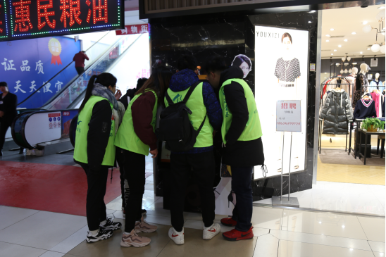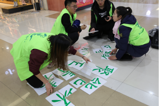 在拼图任务环节,队员们需要在商场里通过与商家对暗号、找线索等方式搜寻隐藏在商场中的“我的肩膀--能挑多重的担子”、“聚能环·正青春”等字样碎片以及团徽碎片并完成碎片上相对应的挑战任务。