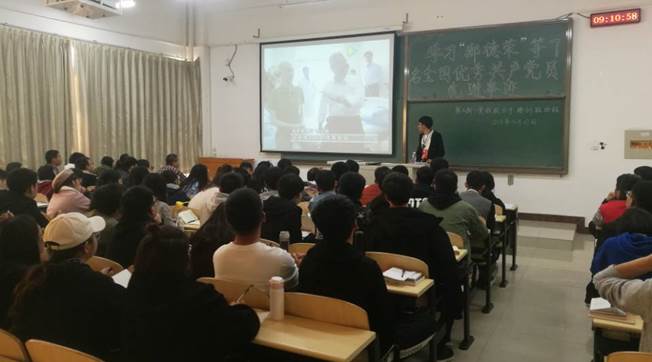 2018年10月27日上午8:30,第30期入党积极分子培训班四班全体学员在逸夫楼G204进行了学习“郑德荣”等7名全国优秀共产党员先进事迹的专题活动。