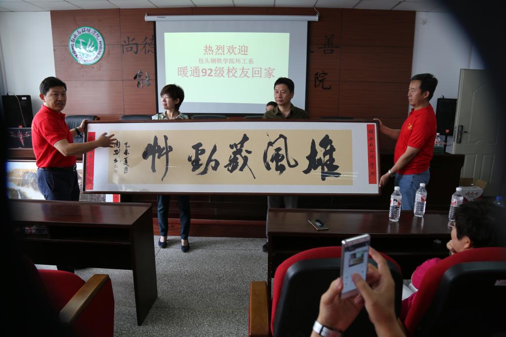 毕业员工代表表达了对母校的思念之情,赠送两幅字画牌匾表示对公司的感谢,同时公司回赠了每一位员工校徽和院徽,并合影留念。 此次活动增进了员工与母校的感情,凝聚了员工力量,加强了公司与员工,员工与员工之间的联系和合作。