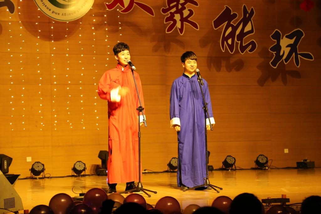 整台晚会绚丽多彩,高潮迭起,既有炫酷的现代舞,又有富含民族特色的蒙古歌,既有较高的观赏性,又有一定的思想性,体现了能环学子的才貌双全。晚会在开场舞的激扬中拉开序幕,别样的造型令人耳目一新。在观众的掌声中各班15级新生代表依次登台,为自己的班级来了场“30秒速说”,或搞笑或沉稳台下的观众们笑的不亦乐乎,这别具特色的方法带来了晚会的一个小高潮。之后谐趣幽默的歌曲串烧、独唱蒙古歌曲和民族舞《祝福》让观众如痴如醉,伴舞曲《山楂树之恋》让我们置身于情与爱的世界里。而小品《迷失的爱》更是意味深厚,一句子欲养而亲不待令每个人沉思与反省。接下来的相声和魔术将晚会彻底的推向了高潮,笑声不断掌声不停惊叹连连,令观众们意犹未尽。晚会临近尾声,诗歌朗诵《那一年我们毕业了》,自创小品《爱生活,爱科大》带我们走向了毕业季,现实与青春的交织令人感叹。最让人印象深刻的便是经理的致辞,台下观众不停叫好,经理的殷殷嘱托打动着每一个能环学子的心。最后晚会在大合唱《相亲相爱》的歌声中缓缓落下帷幕。