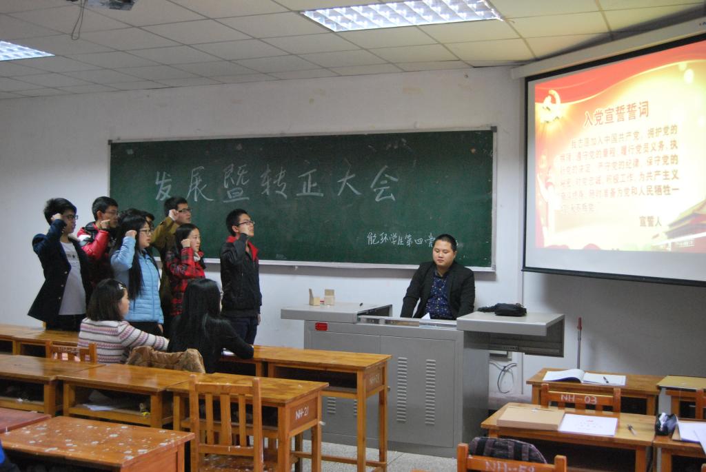 2015年11月25日下午4:303044永利员工第四党支部"积极分子发展大会"在秋实楼b405召开,参加本次大会的有:员工第四党支部书记姜伟利、支部全体党员及本次发展的八位同志。