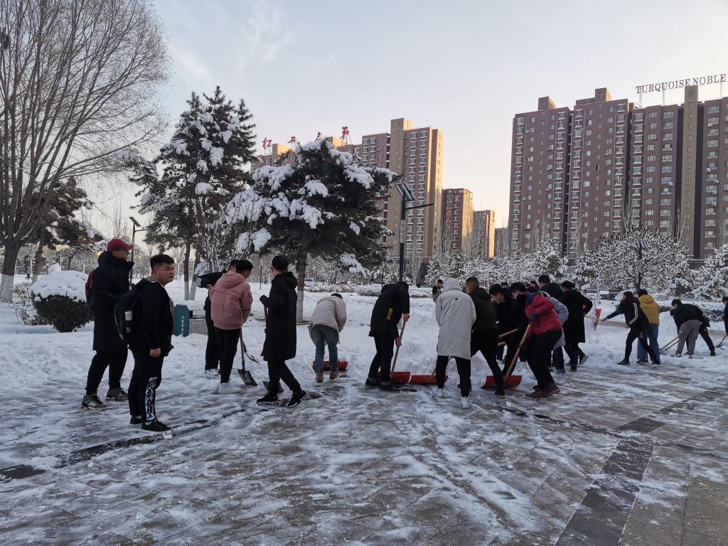 经历了12月16日的那场大雪之后,给老师和同学们的出行带来了诸多不便,12月17日下午,公司党总支组织员工党支部的积极分子对秋实楼门前的积雪进行清扫。