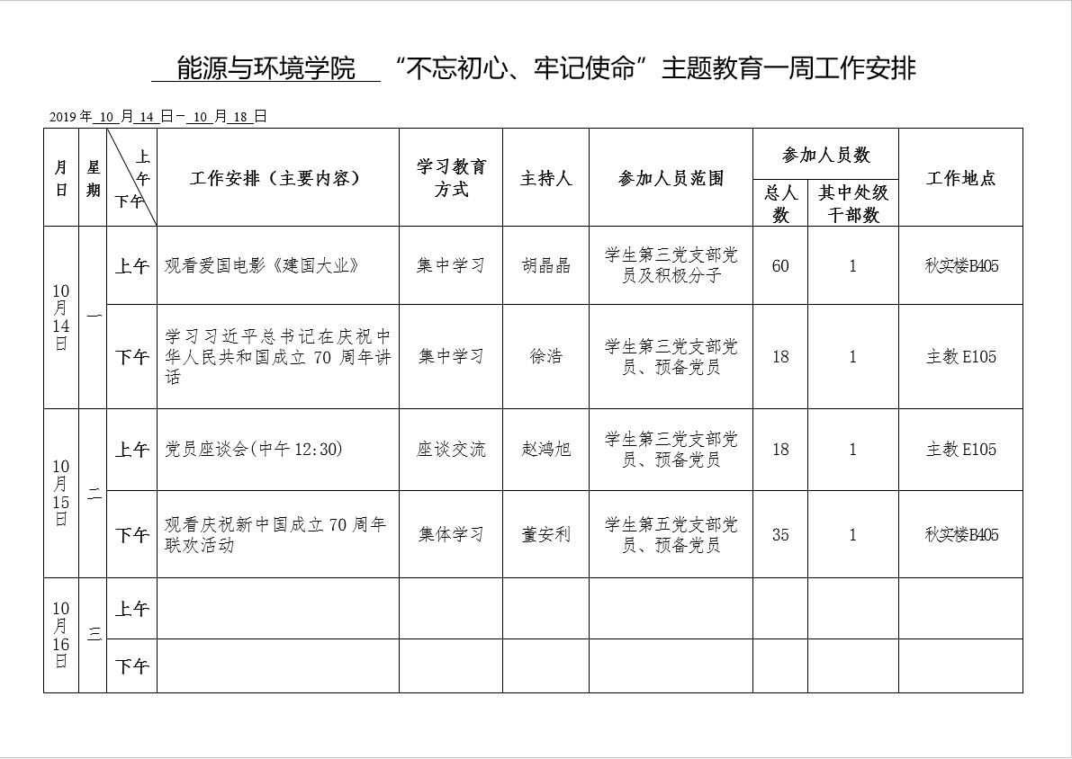 3044永利 “不忘初心、牢记使命”主题教育一周工作安排(10.14-10.18)