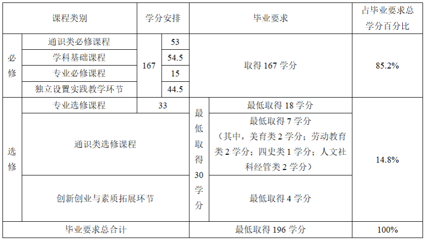 六、教育平台构成、学分安排、毕业学分及学位授予要求